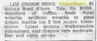 | Lim Choon Seng Undertakers (1947 Advertisement) |